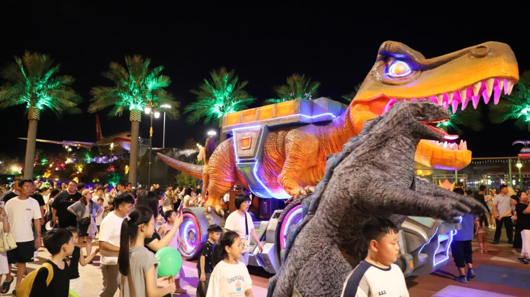 活动内容:怀府恐龙园以恐龙大迁徙之发现火源、爱心传递、远古之谜、科普之旅四大系列活动,打造沉浸式恐龙梦幻乐园,通过园区NPC互动、恐龙知识科普、数字化展演让游客在游玩中探索恐龙知识,充分体验科技与史前奇遇,感受双节狂欢的魅力。